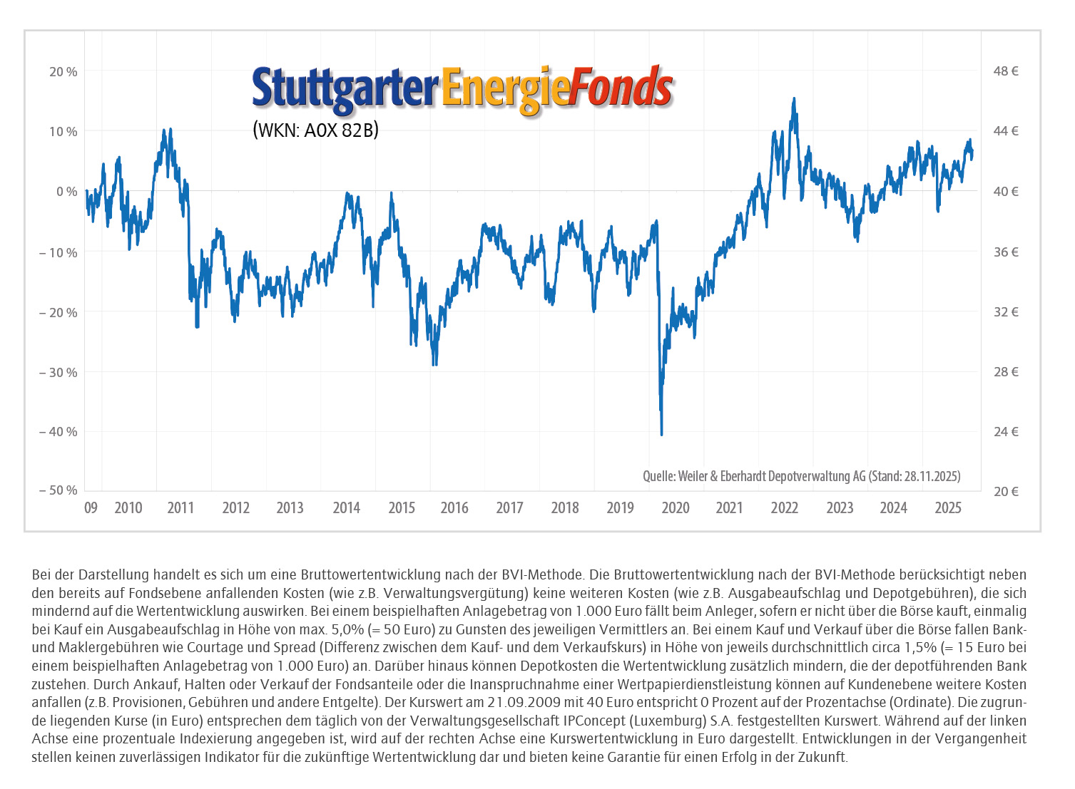 Anlegern, die in die Energiebranche investieren möchten, hier aber nicht auf Einzeltitel setzen wollen, bietet sich ein diversifizierter Fonds wie der Stuttgarter Energiefonds an. Das Team der Weiler & Eberhardt Depotverwaltung AG um die Vorstandsmitglieder Joachim Brandmaier und Heiko Strauß managt den Fonds nicht auf Grundlage eines Index, sondern richtet den Fokus bei seinen Analysen und Entscheidungen in erster Linie auf die einzelnen Unternehmen. Auch der Branchenbegriff wird weit gefasst. Unternehmen mit einem energiebezogenen Umsatzanteil ab zehn Prozent können in den aktiv verwalteten Stuttgarter Energiefonds aufgenommen werden. Das Anlage­universum ist entsprechend breit und enthält alle denkbaren Unternehmen der Wertschöpfungskette: von Zulieferern und Dienstleistern über Transport bis hin zum Vertrieb und zu der Weiterverarbeitung zu Endprodukten. Zu den Vorteilen gehört neben der Streuung über derzeit 28 Titel auch seine hohe Transparenz. Durch regelmäßiges Rebalancing achten wir zudem darauf, dass die Mischung weitgehend ausgewogen bleibt und keine zu großen Abhängigkeiten von Einzeltiteln entstehen.